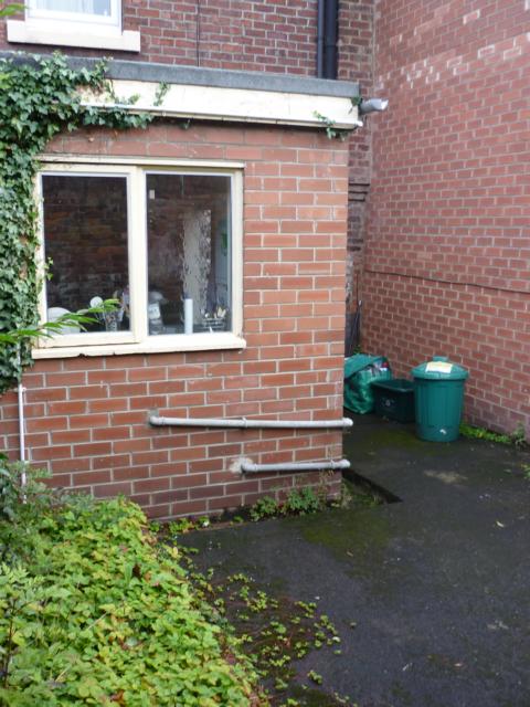 Hinterhof mit Fenster der Wohnküche