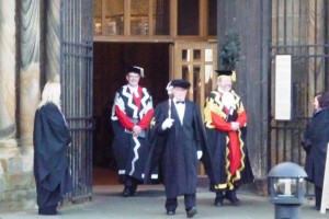 Offensichtlich begrüßt Durham seine international students sowie graduands und deren Angehörige mit angenehmer Wärme und Sonnenschein, denn heute (am 14. Januar) war das angenehm warme Durham zur Winter congregation von einem hellblauen Himmel überspannt. Die Winter congregation ist die halbjährliche Abschlussveranstaltung bei welcher die Studierenden ihren Universitätsabschluss erhalten bzw. offiziell den Titel Bachelor, Master oder Doctor verliehen bekommen. Gestern, am 13. Januar, waren Katharina und ich in der Stadt um Strom und Gas aufzuladen und einzukaufen als mir das mit der Winter congregation einfiel. Wir sind daraufhin schnell zum Palace Green gelaufen in der Hoffung noch ein paar Gown-Träger zu sehen. Der Vorplatz der Kathedrale war leer bis auf Security Leute und zwei Damen im Gown. Zum Glück fragte ich eine davon, wofür die unterschiedlichen Farben der Kapuzen standen, woraufhin wir zum Chapeleingang der Kathedrale geschickt wurden. Dort erhielten wir ein Prospekt mit Erklärungen zu den Farben und wurden gleich in die Kathedrale durchgewunken, wo wir genau rechtzeitig zur Zeremonie kamen und noch einen Sitzplatz bekamen. Die Kathedrale wurde offiziell der Universität übergeben und dann kam die Prozession mit Chancellor und Staff-members herein, währenddessen alle anderen Gäste stehen mussten. Anschließend wurde eine Rede auf die Graduands gehalten und dann wurden geordnet nach Abschluss/Titel und Name alle Graduands nach einander vorgelesen. Diese bekamen vom Bedel (schwarz uniformierter Universitätsangestellter mit Stab, der für Ordnung sorgt und die Umzüge anführt hat) die Richtung gewiesen und durften dann während der Nennung des Namens auf die Bühne steigen und bekamen vom Chancellor die Hand geschüttelt (der hat sich gefreut…). Die Laufwege, Handbewegungen und der Wortlaut waren genau vorgeschrieben. Bevor eine Gruppevon Studenten mit gleichem Abschluss vorgestellt wurde erhob sich eine Unibedienstete im schwarzen Gown und bat den Chancellor die Graduants im Bereich XY zu empfangen, woraufhin dann der Chancellor seinen Hut zum Gruße hob. Die Uniangestellte hob auch ihren Hut, dann lief ein Stellvertreter des Bereichs zum Pult und es wurden die Namen klar, langsam und deutlich verlesen. Nach jeder Gruppe wurde geklatscht, wobei man am „and“ zwischen den Namen gemerkt hat, dass man klatschen musste. Das Spielchen ging noch einige Zeit so (und es kann ganz schön geduldsfordernd sein soviele Namen zu hören) bis abschließend der Chancellor eine Rede gehalten hat und offiziell – kollektiv – die Titel verliehen hat. Dann verließ die Prozession von Chancellor und Uniangestellten die Bühne und die Kathedrale, wobei man wieder aufstehen musste. Da nun auch die Graduates die Kathedrale in einer Prozession verließen wurde nun über mehrere Minuten ausgiebig geklatscht. Draußen wurden Fotos gemacht und die Absolventen haben erst einmal gejubelt. Da die Veranstaltung insgesamt 4x durchgeführt wird, um all die Studenten durchzuschleusen, konnte ich am 14. Januar noch einmal zur Kathedrale laufen und Fotos von der aus der Kathedrale ziehenden Prozession machen.